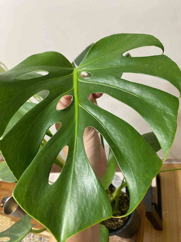 よく見ると切れ込みが深く、この葉の大きさの割にすでに穴がチラホラ。普通かと言われたら普通かなぁ,、、珍しい子と思い込みたい補正かかってるかもです。