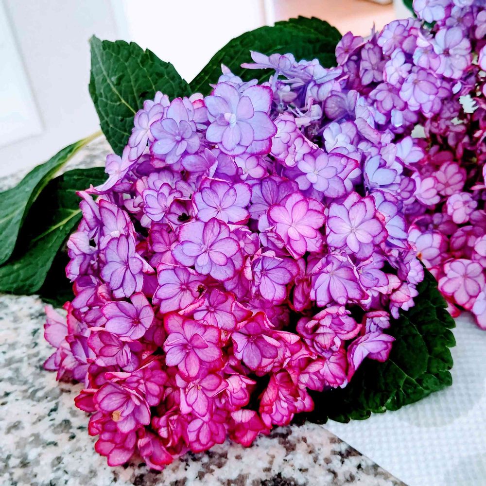 6月「6」のつく日のおまじないに紫陽花2本切りました♫