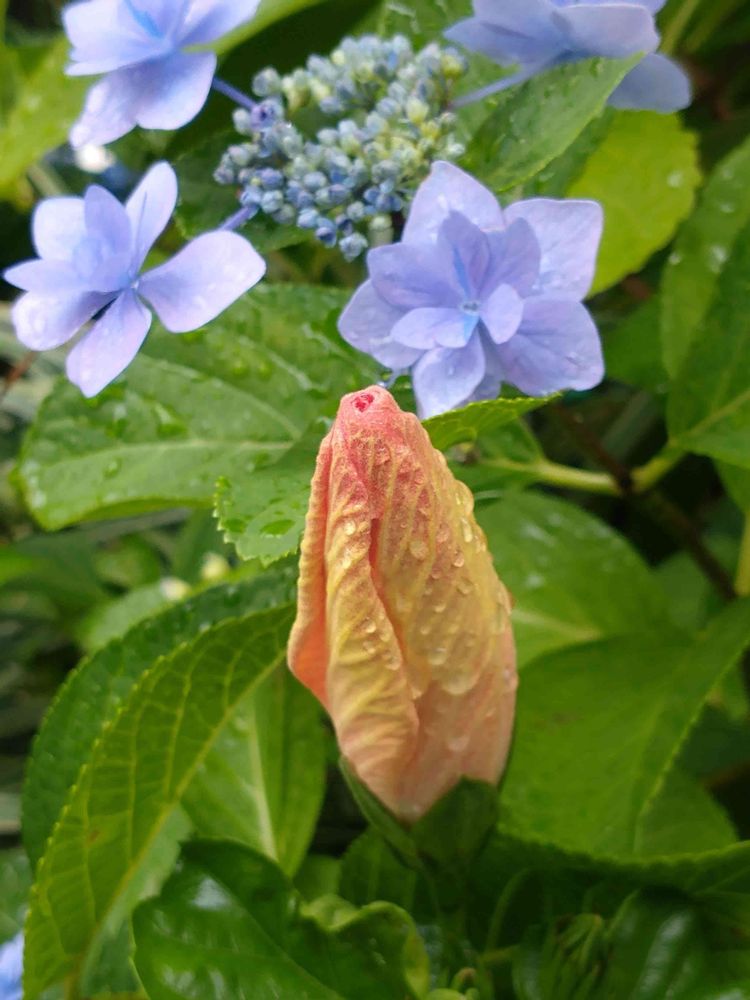 ガクアジサイ(額紫陽花),オレンジハイビスカス,金曜日の蕾たちの投稿画像