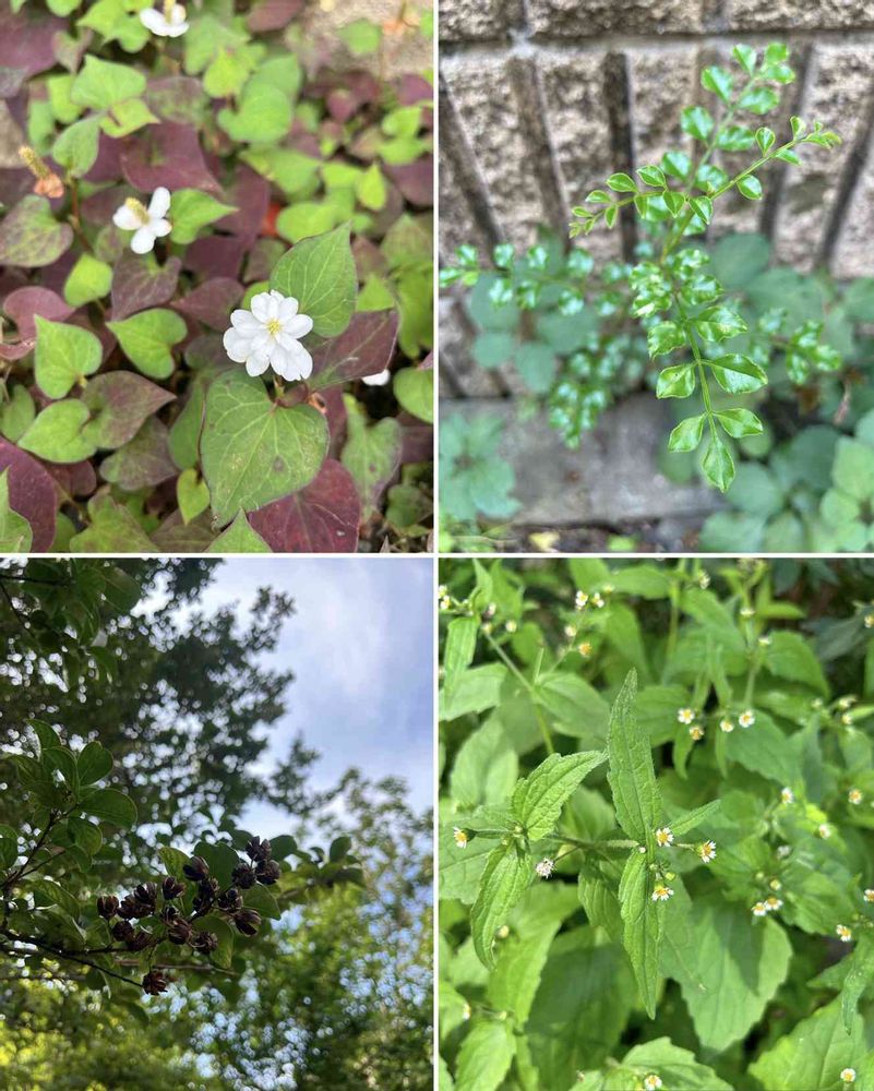 2日ほど降り続いた🌧🌧が上がると公園の空気が夏に変わったようです。近所の公園の静かな朝・・・八重混じりのドクダミ🤍、こぼれ種から発芽したシマトネリコ🌿、去年の花の実が残ったサルスベリ🌳、ハキダメギク🌱