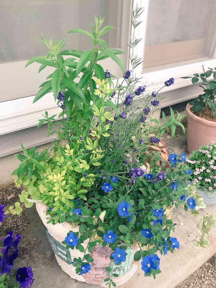 リーフ系とアメリカンブルーの寄せ植えもだいぶ馴染んできました。