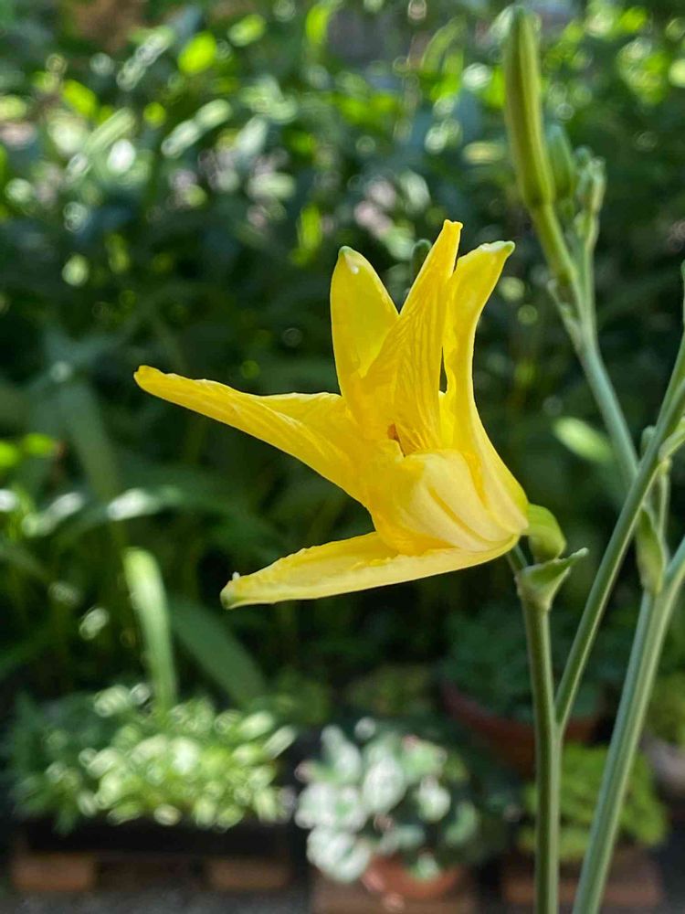 昨日、帰宅したときには全く気がつきませんでした。今朝、庭に出たら閉じかけたユウスゲちゃんがいました。しかもこっちを向いて😥