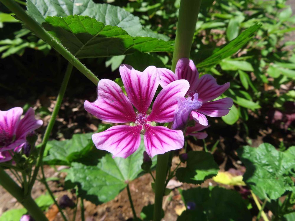 「ゼニアオイ」と思ってパチリしたのですが、ゼニアオイは小銭ほどの大きさとのこと。 このお花は4~5cmほどなので、「ウスベニアオイ」のようです。