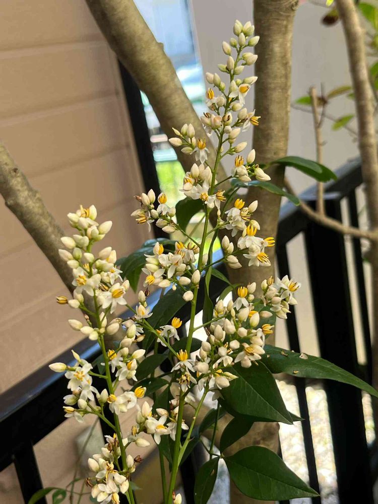 まだフェンスの高さの南天に花が咲きました。😊🤗💕💖