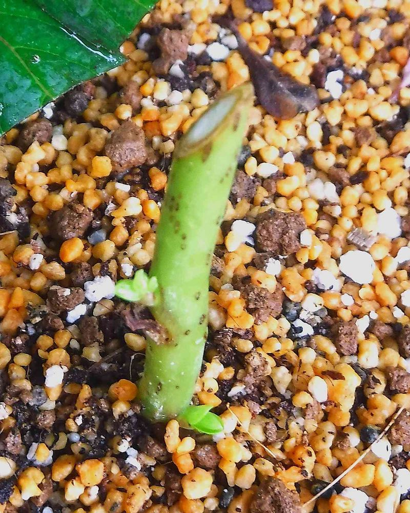 6 / 9 日に、挿し木をしてから1週間ぐらいで新芽が出てきました(左側の中央と右側の付け根)