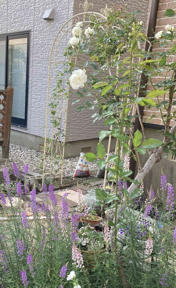 小さな庭,バラ アイスバーグ,宿根リナリアの投稿画像