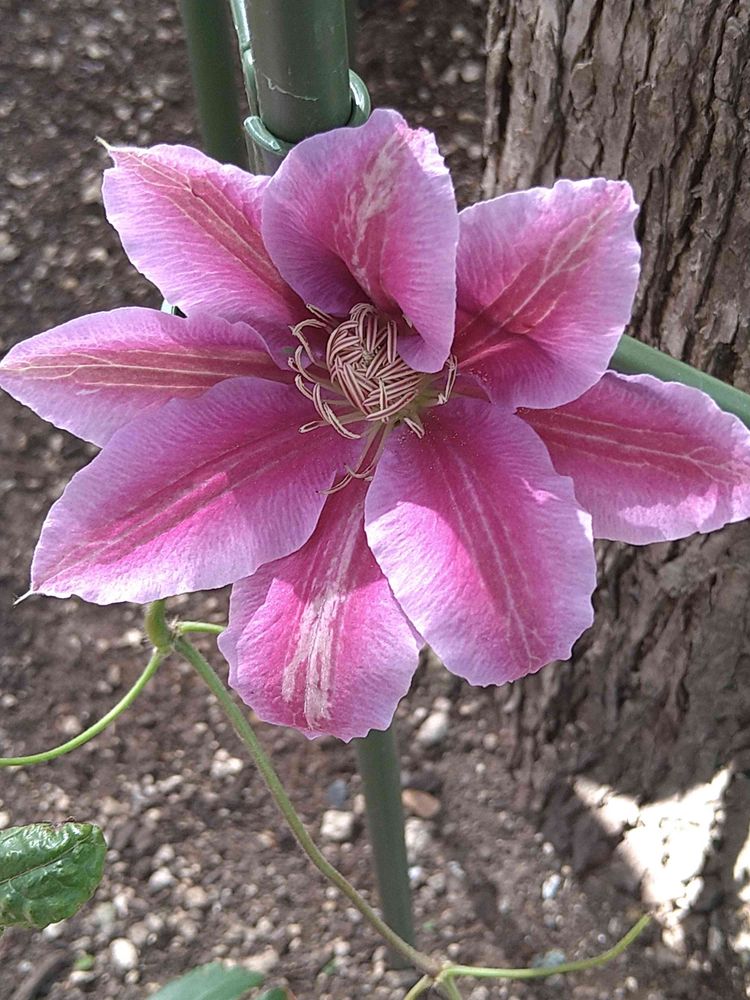 花びらの色が濃いピンクで強い線入って、中心の雄しべ?なんか、線入りでオシャレ✨〜♬.*゚
