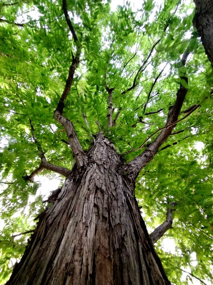 真下から見上げたら、まっすぐ天に伸びる幹と、枝、明るい緑の葉っぱが描くこの光景が大好きだから