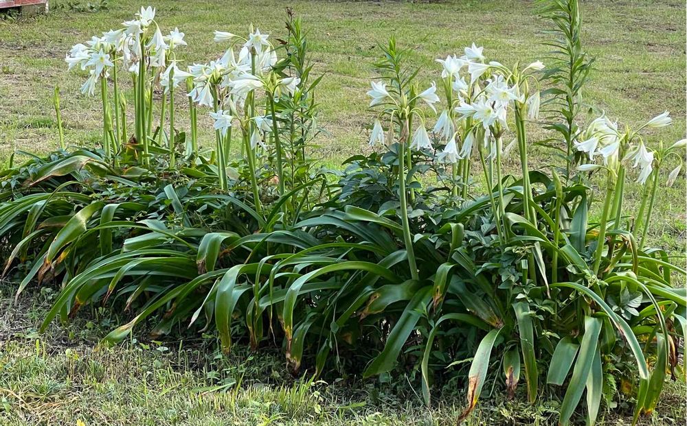 今年も定点観測の、アフリカハマユウの花が咲きました。昨年に比べたら、株の大きさ、と言うか、群生面積が半分くらいになりましたが、生き残った個体は、ちゃんと季節を忘れずに、綺麗な花を咲かせています。