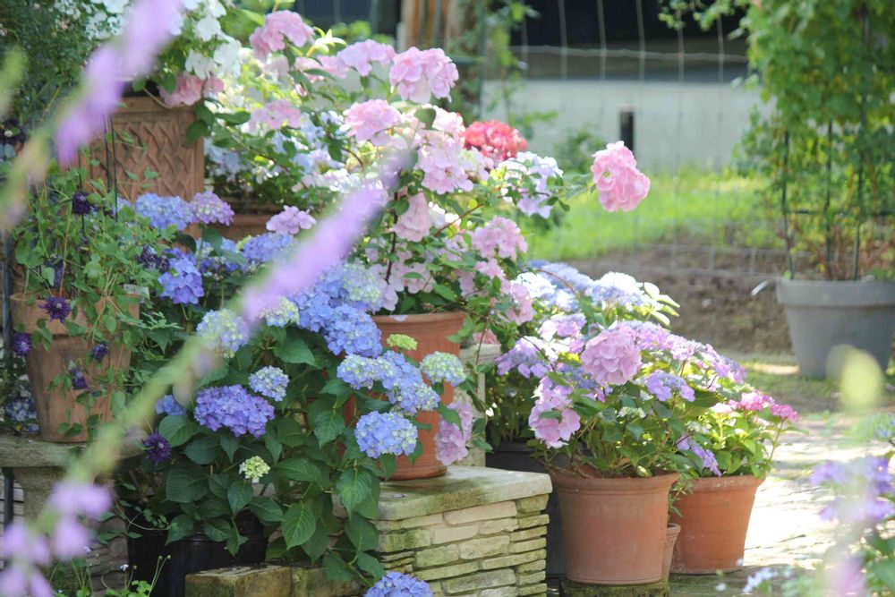 たくさんの紫陽花が、門の前に並べられていました🌸