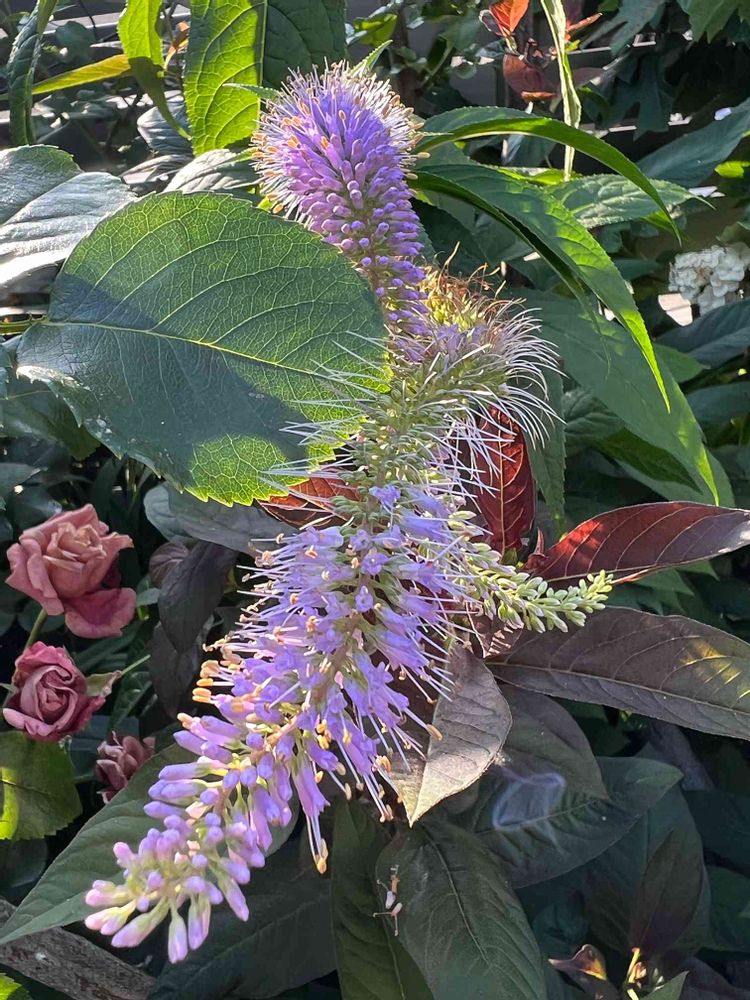 毛虫みたいにモゾモゾしているクガイソウ。リシマキアファイヤークラッカーの隙間から顔を出してます🐛