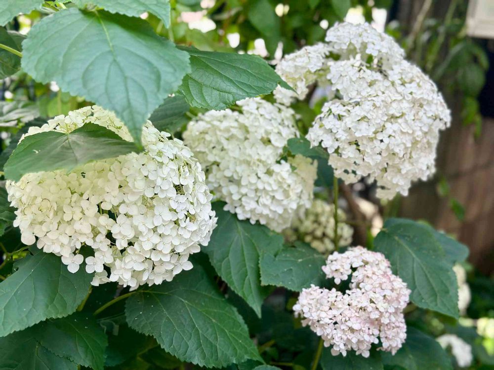アナベル、良いですよ〜。日陰でもそこそこ咲くし。剪定も気を使わないし。