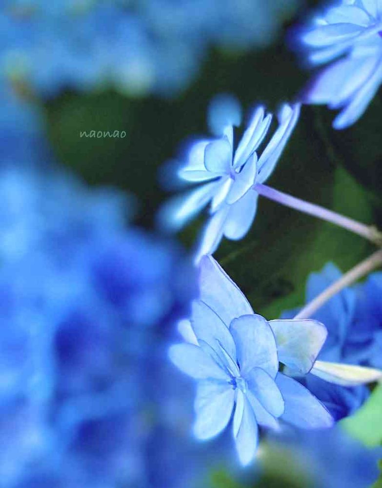 どっちも綺麗なブルーで、バックの濃いブルーの紫陽花がボケて、全体がブルーの世界になりました🤍🩵💙