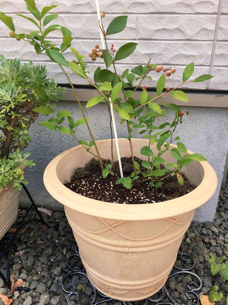 賃貸だけどずっとシンボルツリーが欲しくて、ブルーベリーの鉢植えに初挑戦です。