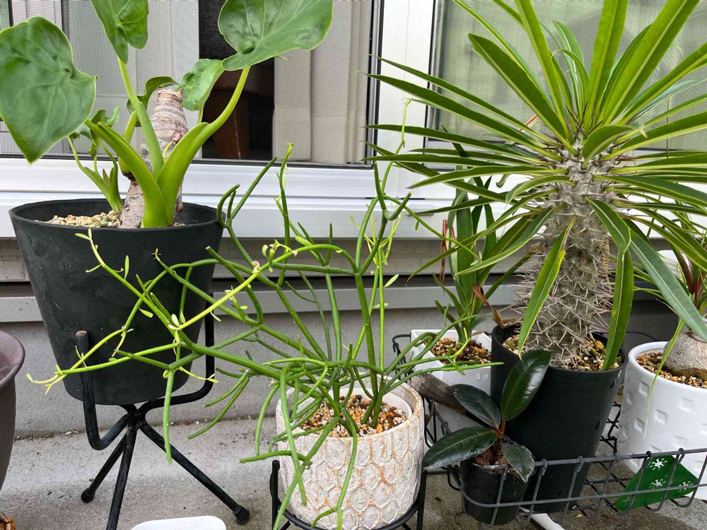真ん中、ミルクブッシュ室内管理していたけど今日から外に出してみた。