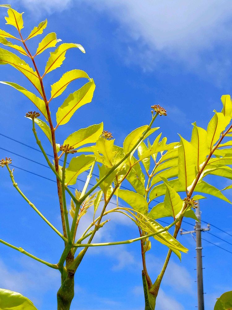 タイワンモミジ🌿の葉と花(蕾)が青空に映えてます!😃