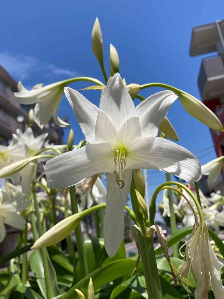 道路脇の植え込みで咲いています。青い空がお似合いです😃