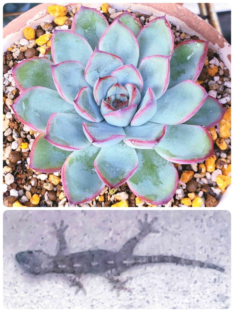⬇️夕方庭の植物に水やりをしていたら、久しぶりに姿を現したヤモリちゃん❣️😃