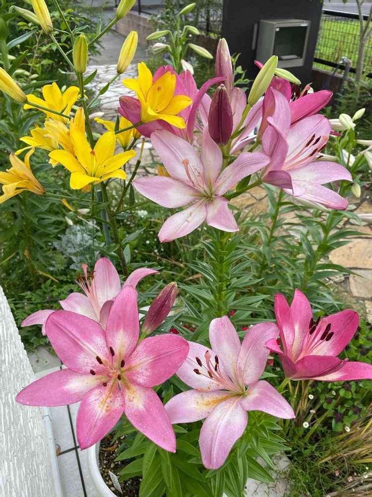 ユリが満開で、ご近所さまにお配りして今年も喜んで頂きました☺️