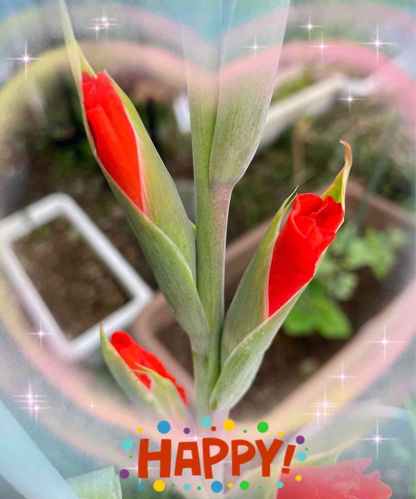 グラジオラスの花芽〜🧡のお花かなぁ♬