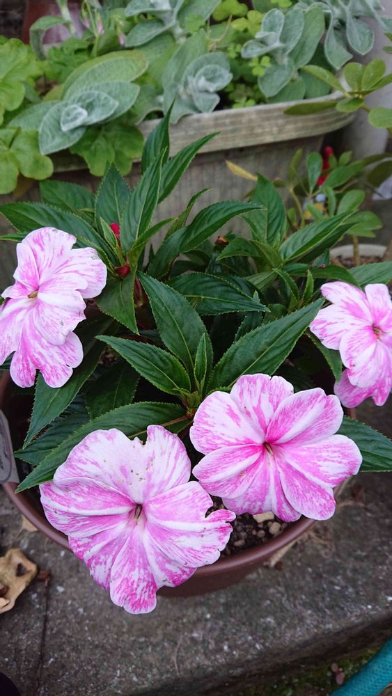 最初赤/白に出会えた時初めてだったので、この色がいいね👍️と話ししてましたが、このまだらのインパチェンスに出会って主人と速攻でした😁🎶