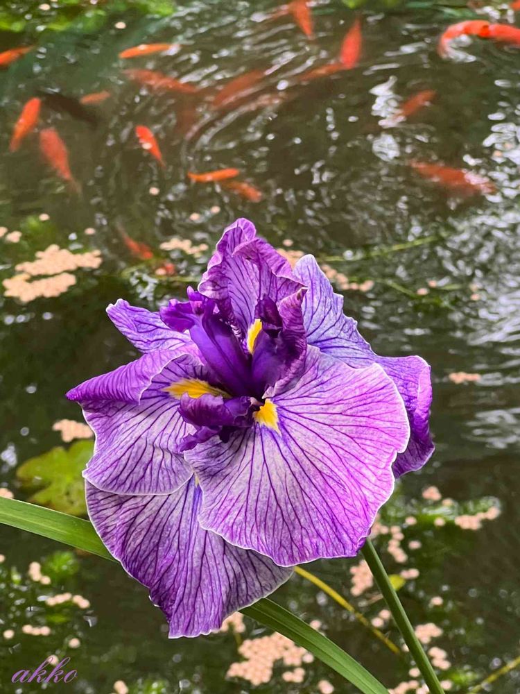池の鯉たちに餌をくれてたら、花菖蒲か咲いてました
