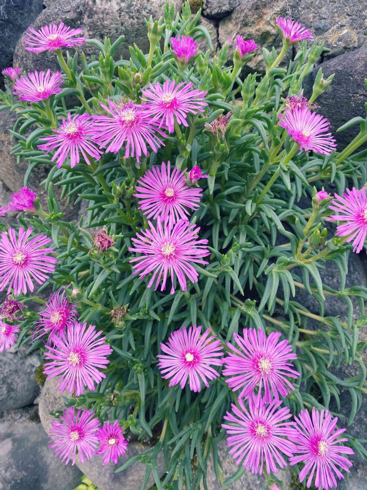 昨日気づいたのですが、うちの周りの石垣に、マツバギクみたいな葉がずーっとあったのですが、花も毎年咲かないし、何なの?って思ってたらお花咲いてました🥰