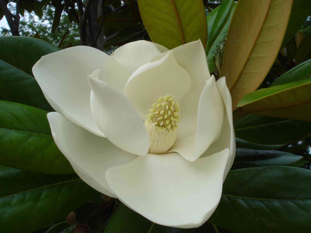 この花は一番綺麗な姿を撮すのが難しい 大きくなるにつれ花の咲く位置が高くなってしまう。唯一目線で咲いてくれる1本のタイサンボク。来年も美しい花を見せてほしいものです。小学二年の時担任の先生が教室に飾ってくれこの花の説明をして下さいました。先生の顔今でも鮮明に思い出されます。( ◠‿◠ )