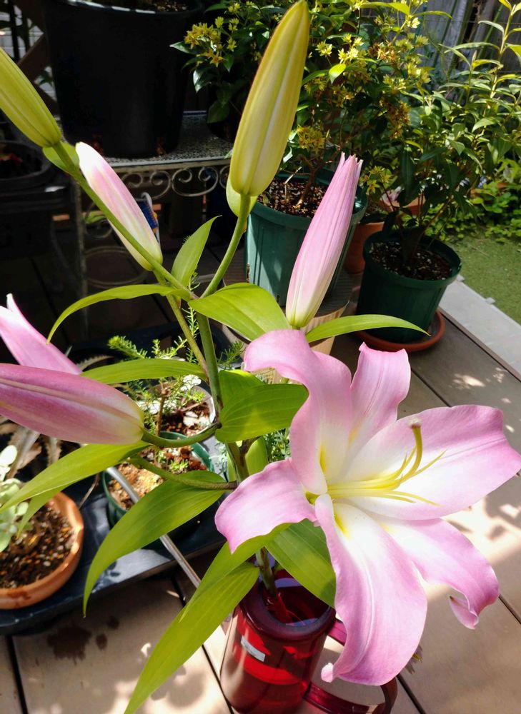 ✨オリエンタルユリのシーラ、昨日、実家に持っていく為に切って、ひとまずジョウロの中へ😌