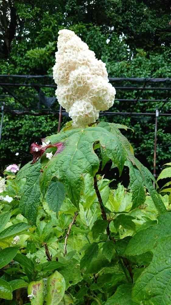 こんなに綺麗に咲いて直立不動のカシワバアジサイは、