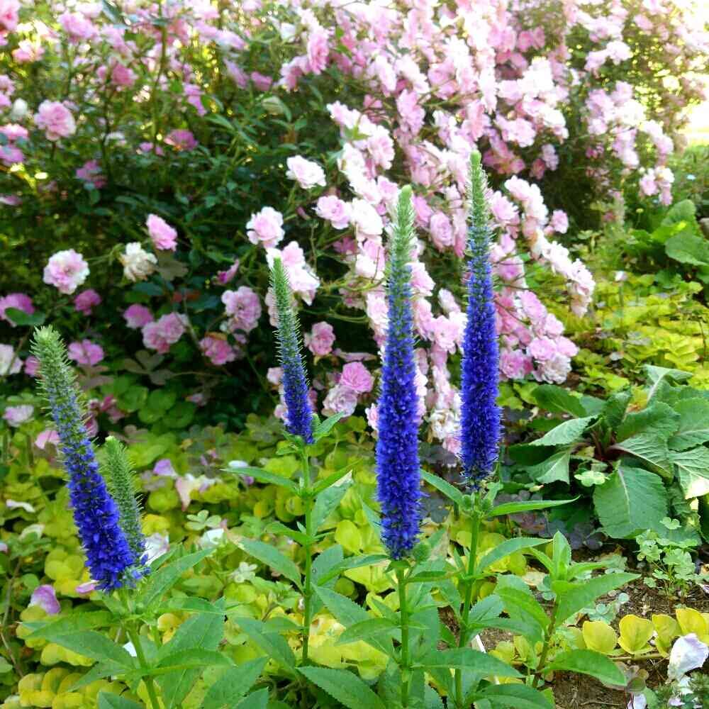 大好きな宿根草ベロニカロイヤルキャンドルとバラ宇部小町です