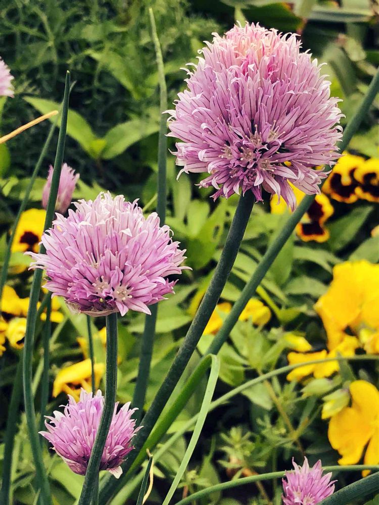 ネギ坊主を小さくした花をつけるチャイブ。別名セイヨウアサツキです。