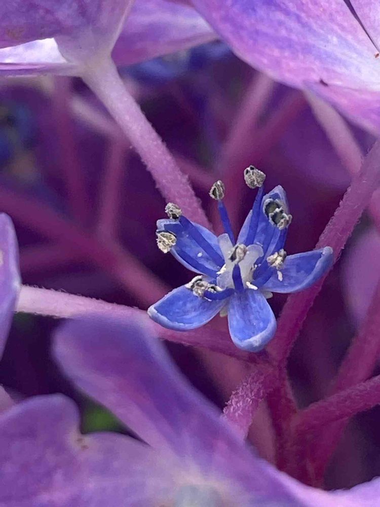 紫系の装飾花をめくったら茎も美しく、この子が咲いていました💙