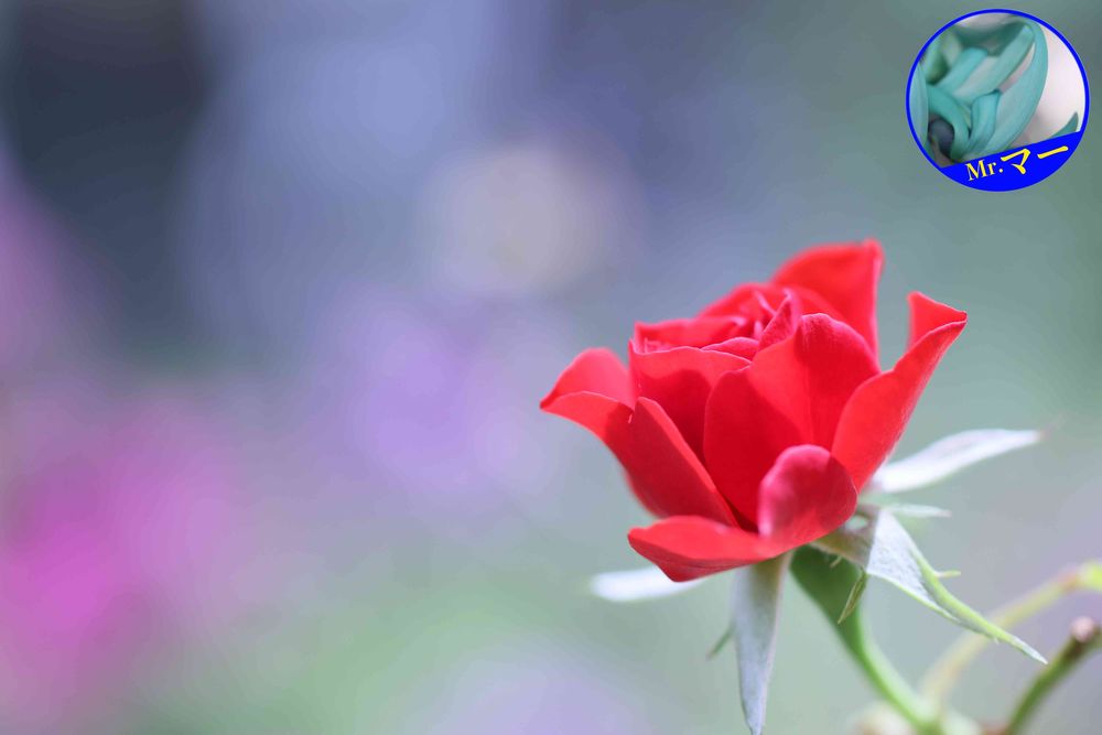 自分はバックのボケをいろんな感じで使っています。今回は隣の鉢のペチュニアを色ボケでファンタジック?な感じに。