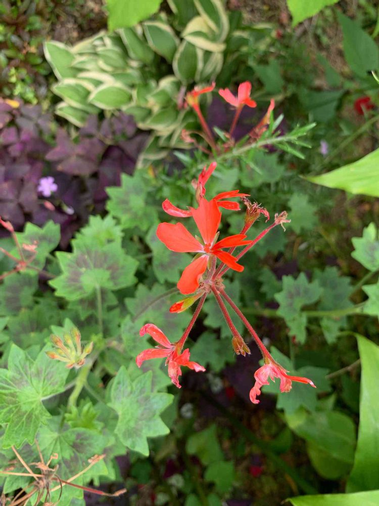 お隣さんから分けていただき、地植えにしたゼラニウム が咲きました。日陰だけど育ってくれるといいな。お隣でうまく行っている植物は成功する確率が高いですよね。