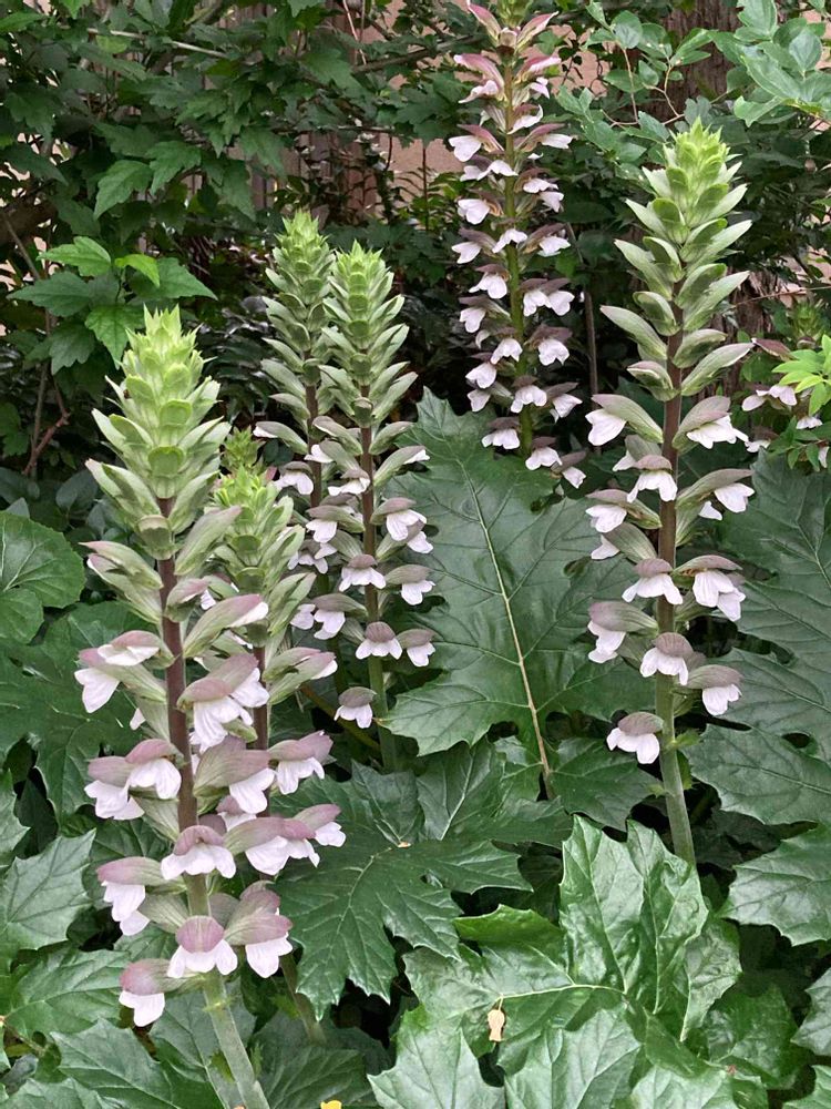 定点観測的に毎年咲くのを楽しみにしているアカンサスです。今年は花数が増えました。それにしても葉っぱの立派なこと!