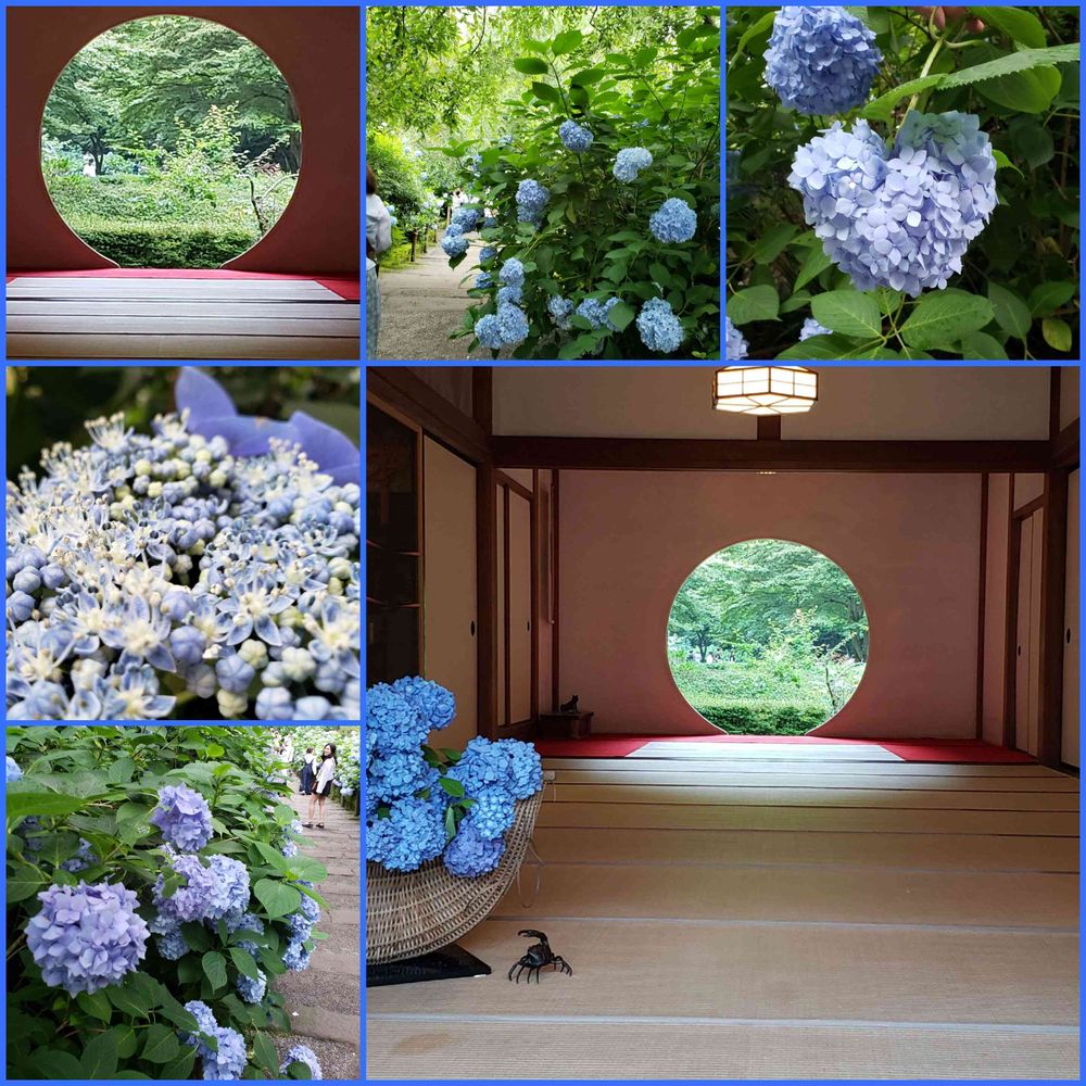 明月院ブルーと呼ばれる青い紫陽花が境内を覆っています😃