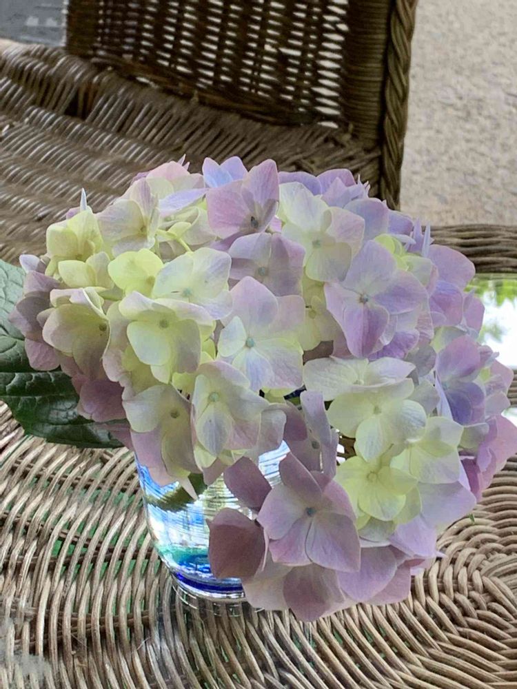 いつも行く山の上のジェラートやさん💕テーブルの上の紫陽花さんが柔らかな優しい色合いでほっこりしました💕