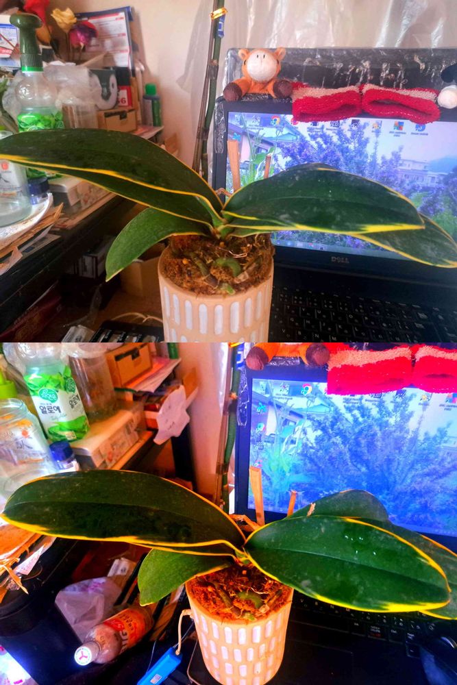 (2023年6月20日 9:11頃 撮影:Galaxy A53) 斑入りの胡蝶蘭さんで。