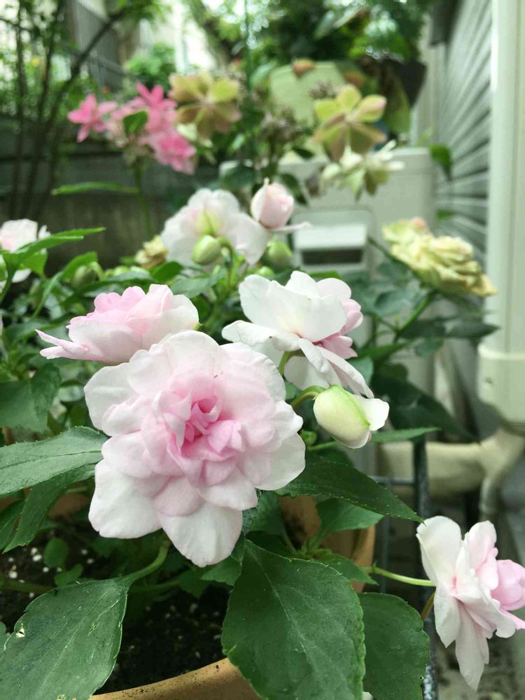 さしゃおくらさんの小さな庭,八重咲きインパチェンス カリフォルニアローズ,鉢植えの投稿画像