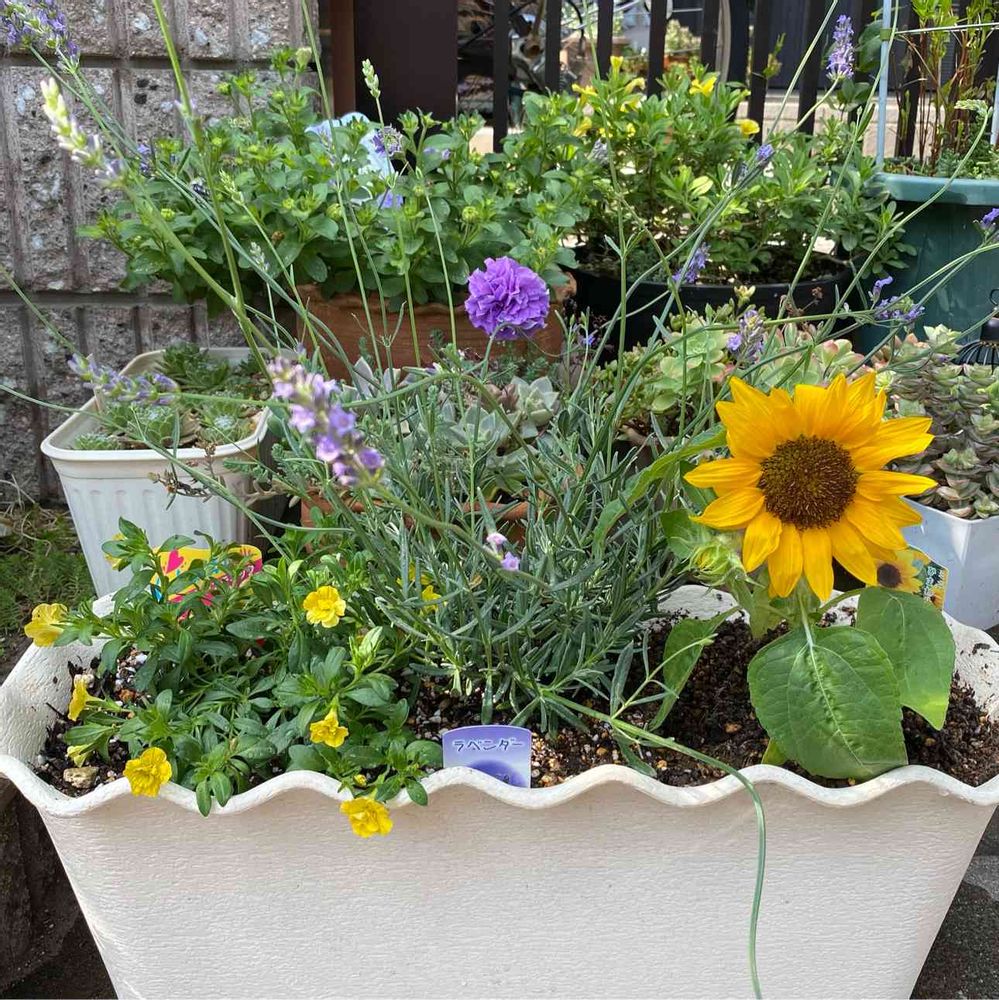 エントランス,ラベンダーグロッソ,ミニヒマワリ スマイルラッシュの投稿画像