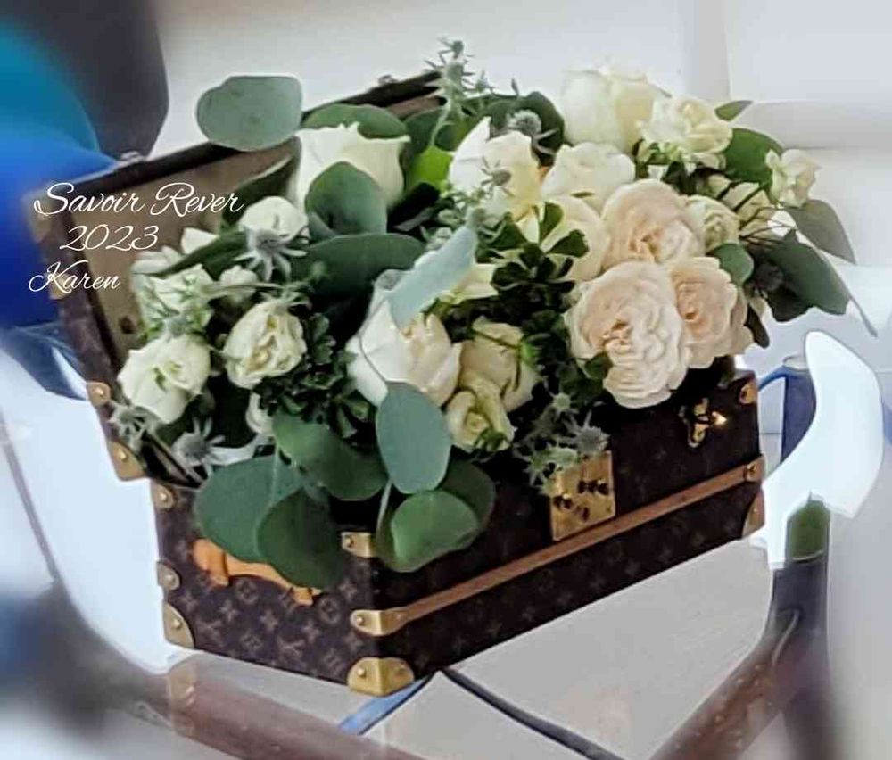 ヴィトン の花器に薔薇がシックな落ち着いた感じが品を感じますね❣️