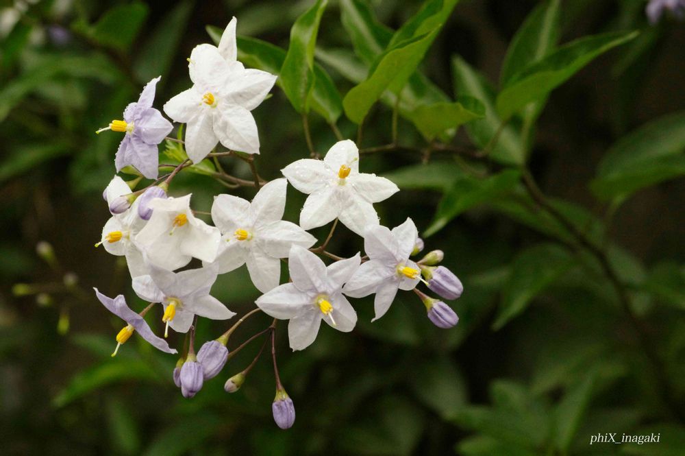 可愛らしいシロ,ツボミはムラサキの花が咲いていました。なかなか名前がわからなったのですが,ナスの様な小さい花,のキーワードで検索に掛かってきました。なるほど調べ方の一つと思いました。