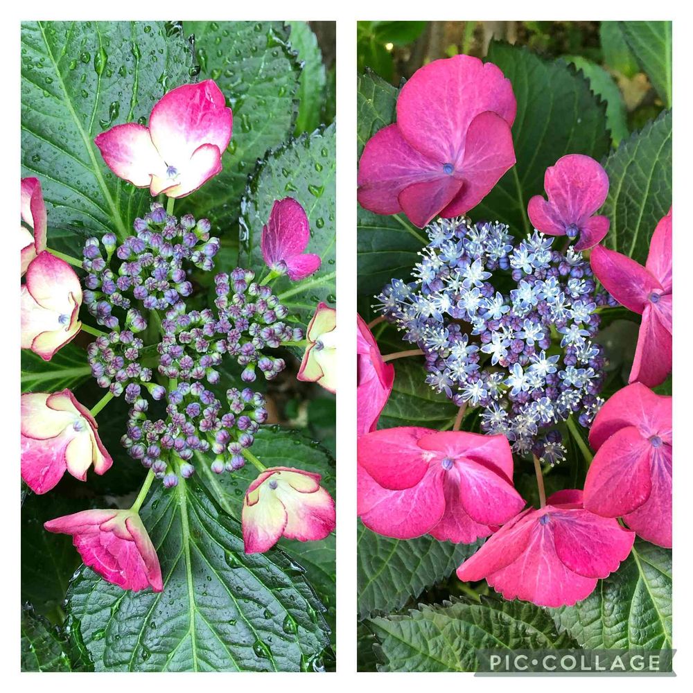 アジサイが咲き進んで、今は鮮やかな色になりました。