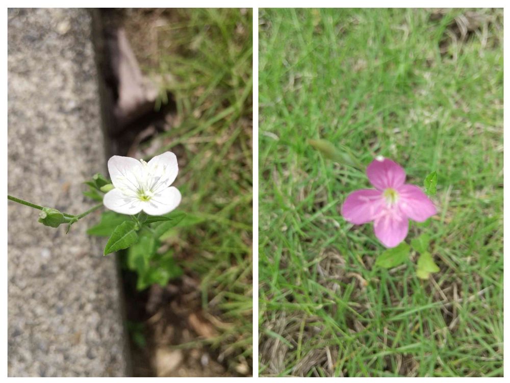 右がアカバナユウゲショウです。左がそのシロバナです。