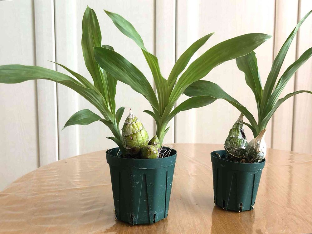 炭疽病が出て切り離したバルブ(右)からも新芽が出ています。