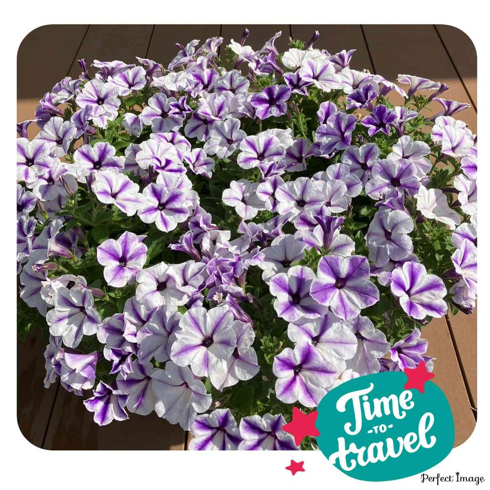 💕サフィニアアートるりいろかざぐるま✨やっと満開に。
