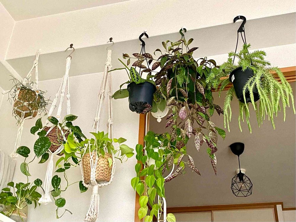 我が家は家の構造上、ここしかハンギングできないのですが、理想はダクトレールとかからハンギングしてジャングル感を出したいですね😆