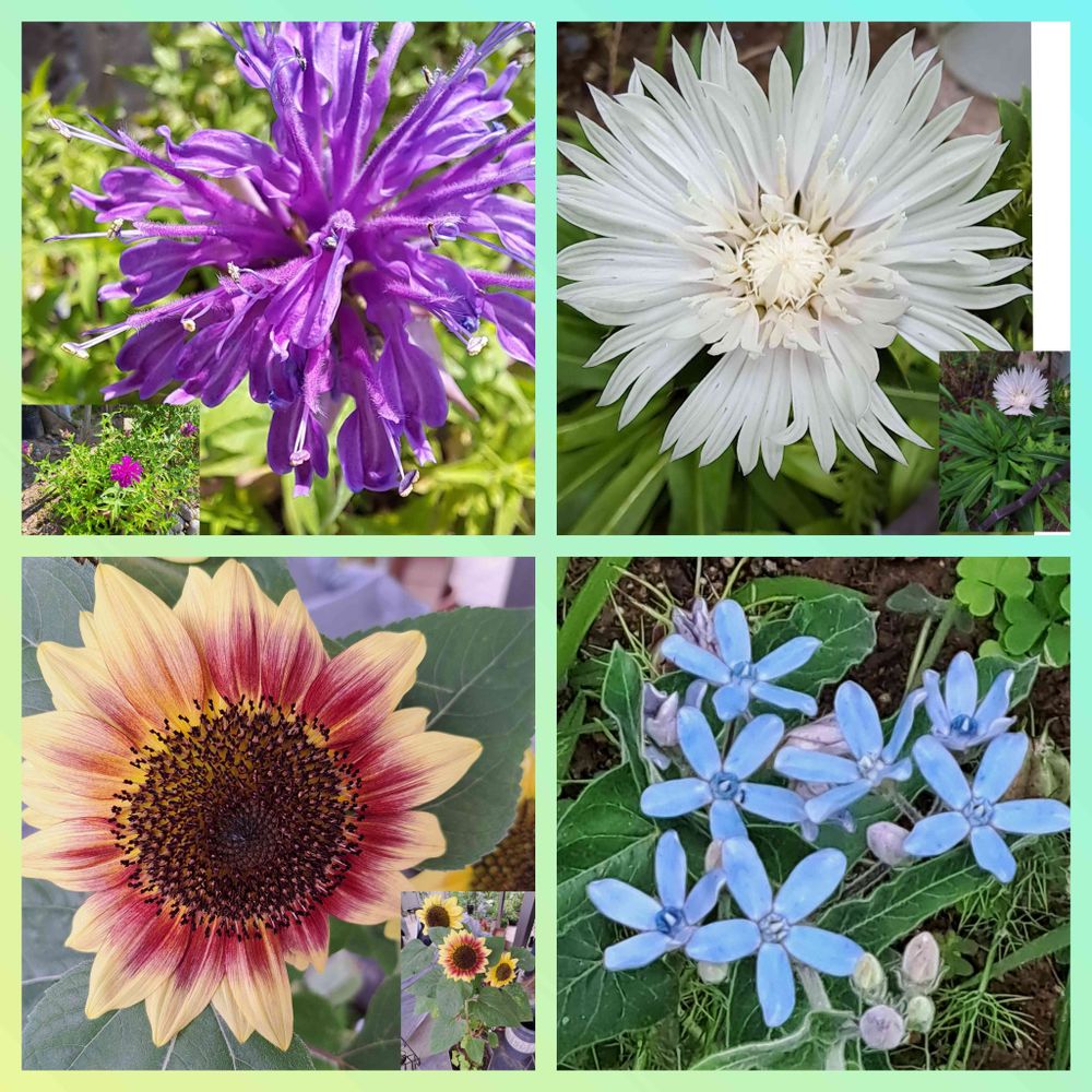 しばらく投稿していない間に色々な花が咲き出しました。種から育てたひまわり、冬越ししたベルガモット、ストケシア、ブルースター。植物が成長する良い季節です。