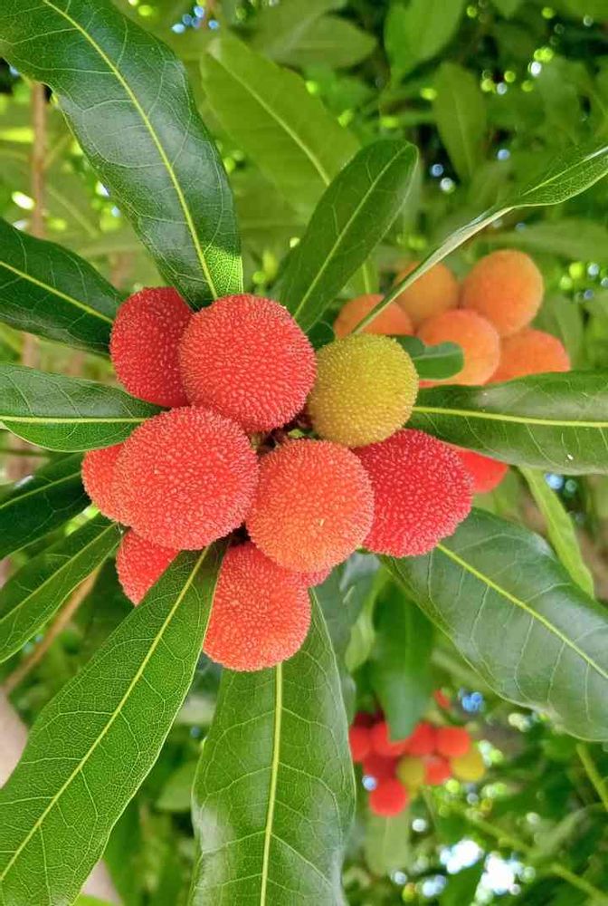 ヤマモモ科ヤマモモ属の常緑高木。暖かい地方の海岸近くに自生し、大気汚染にも耐えるので街路樹や公園木にもされる。葉は細長い倒卵形で枝先に集まってつく。花期は3~4月。枝先の葉腋に円柱形に花をつける。雌雄異株で雄花は穂状に、雌花は直立する。雌雄とも花弁も萼もないシンプルなつくり。雄花は穂に沢山咲き、大量の花粉を風に飛ばす。雌株には果実が実る。果実は核果。6〜7月に赤く熟す。果肉の部分は核から放射状に伸びた毛が多肉化したもの。表面の粒はその毛の先端。野生のヤマモモは、鳥ではヒヨドリ、獣ではニホンザルなとが食べる。サルは1回の訪問でヒヨドリの20倍以上を食べ、サルがいないと散布量は激減するという。人間も平安時代から果物として利用している。甘酸っぱくておいしく、果樹として栽培する地域もありスーパーなどで売られているが、日持ちしないので広く流通することはない。生食のほかジャムや砂糖漬け、果実酒にも良い。樹皮は古くから染料として利用され特に漁網を染めるために用いられた。塩水に耐える特徴を持つ。